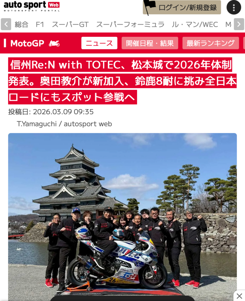 先日の2026年チーム体制の発表の様子がauto sports WEBに掲載されました。